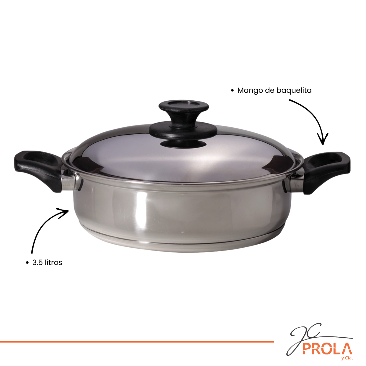 Bifera acero inoxidable triple fondo (acero inoxidable+aluminio+acero inoxidable) con tapa de 3.5lts. Interior antiadherente y asas de baquetilla. Distribuye el calor de manera uniforme y proporciona una cocción más rápida. Ahorra energía y mantiene los alimentos calientes durante más tiempo. Para cocinas eléctricas, a gas, a inducción y vitrocerámicas.