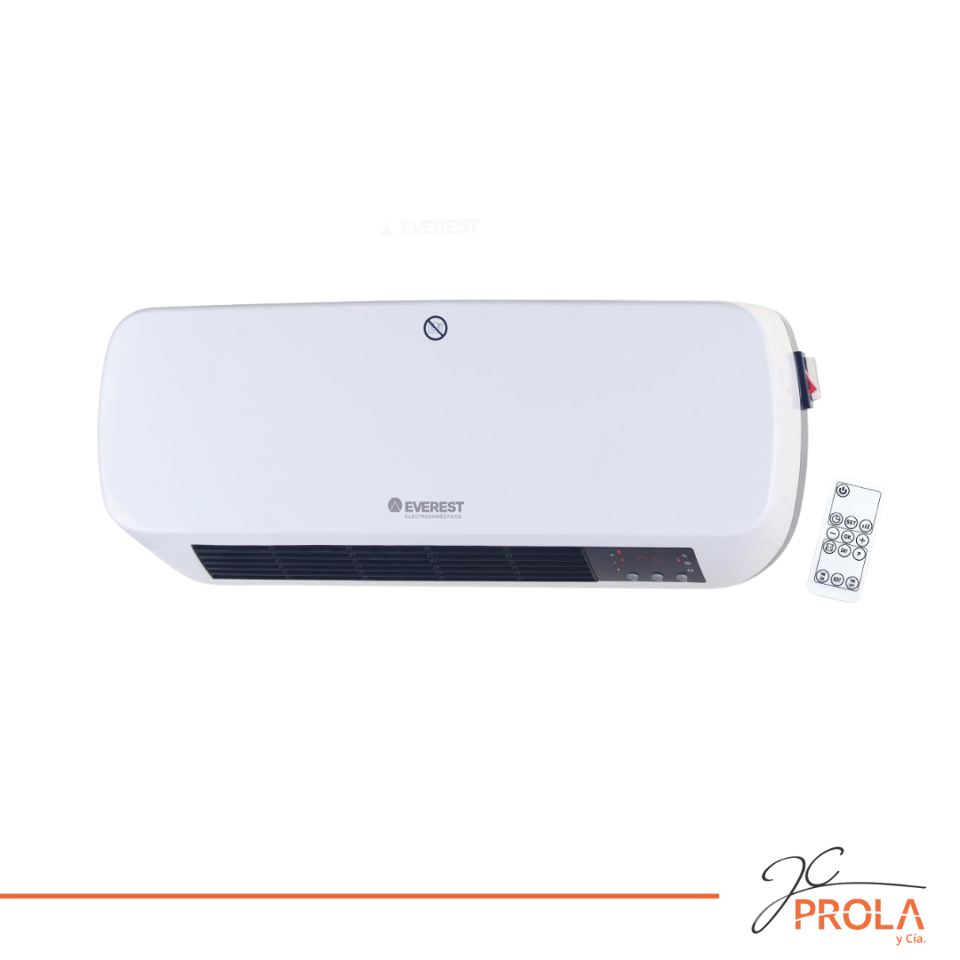 Caloventor cerámico de pared con display led digital. Dos niveles de potencia: 1000W/2000W. Funciones: circulador de aire / viento cálido / calefactor. Protector térmico por sobrecalentamiento. Timer: 12 hs. Incluye control remoto. Medidas: 45cmx19cmx12cm.