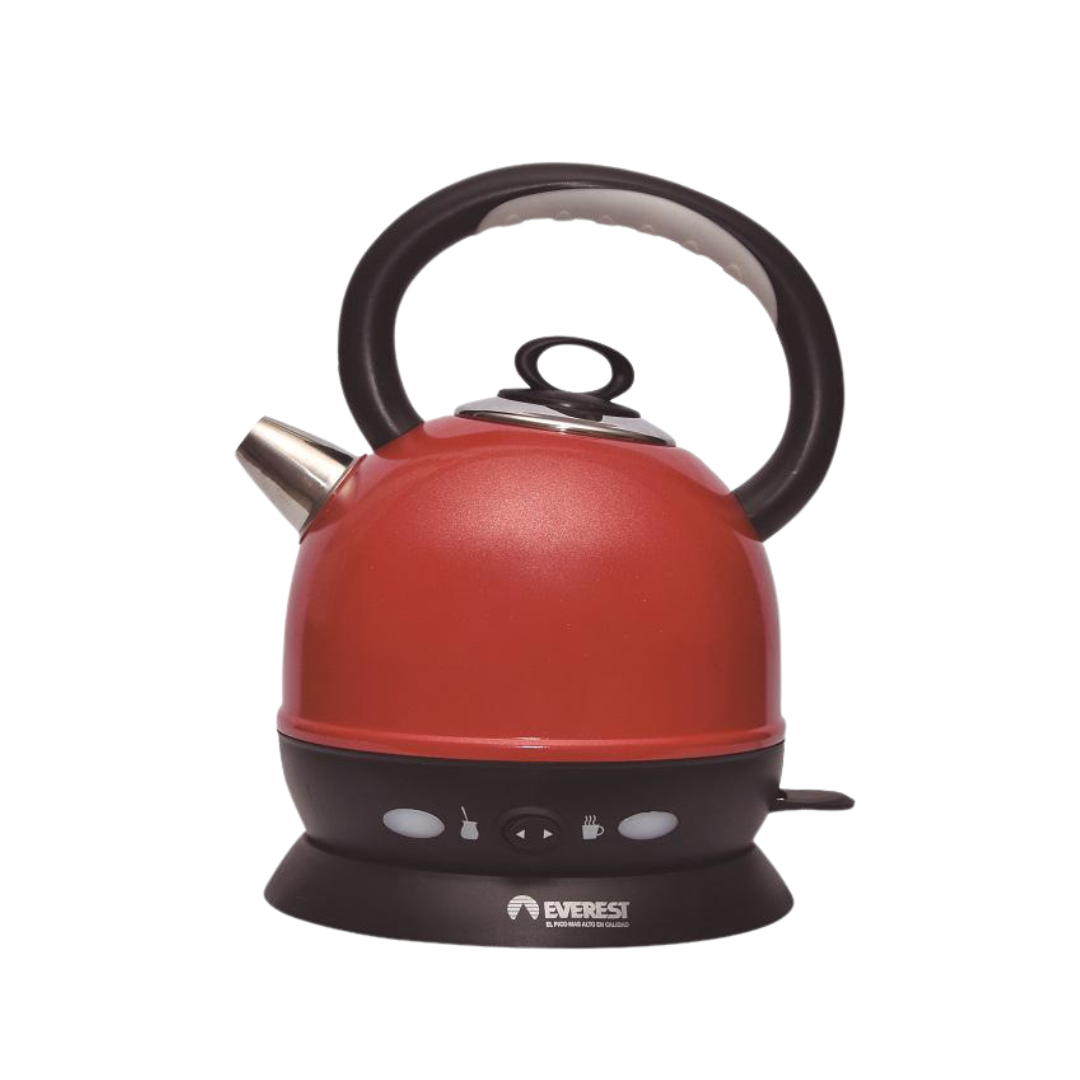 Pava eléctrica de 1.5lts de acero inoxidable pintado metalizado con función mate. Apagado automático optativo a los 80º y 100º. Ideal para mate porque mantiene constante la temperatura entre 70º y 80º. Color: Rojo metalizado.