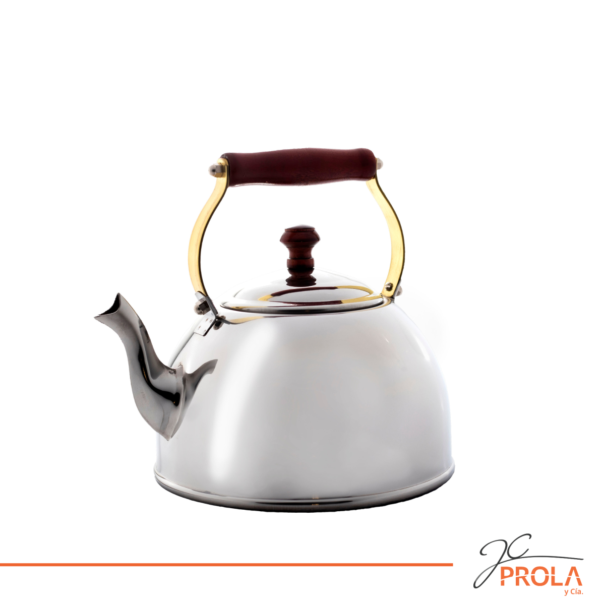 Pava para fogón con pico curvo de 1.7lts con detalles de madera lustrada en mango. Base de 17cm de diámetro. Acero inoxidable.