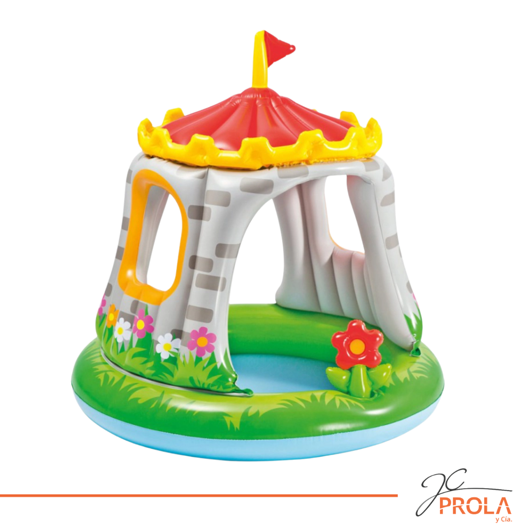 Tiene forma redonda con medidas de 122x122cm y tiene una capacidad para 68litros de agua e incluye un techo para el sol con forma de castillo. Está fabricada con vinilo de gran calidad y resistencia y además de larga duración. Esta piscina inflable infantil está recomendada para niños entre 1 hasta 3 año.