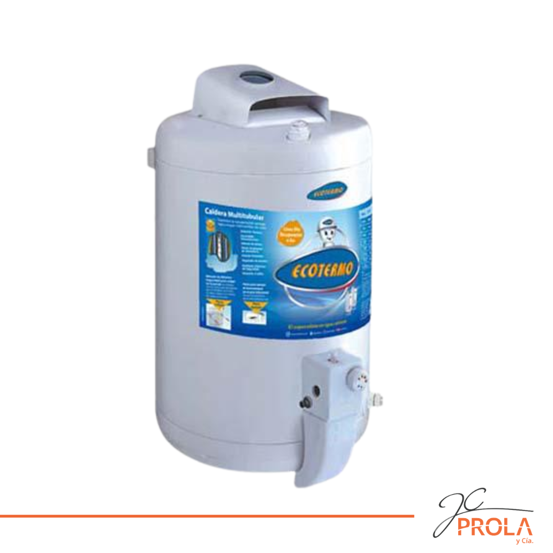 Termotanque a gas de 53lts alta recuperación conexión inferior. Para colgar. Con caldera multitubular que favorece la recuperación porque logra mayor intercambio de calor. Con encendido piezoeléctrico, regulador de presión, válvula de alivio y piloto analizador de atmósfera. Recuperación: 230lts por hora. Medidas: Alto: 80cm. Diámetro: 43cm. Garantía: 3 años. Packing: 1 unidad.