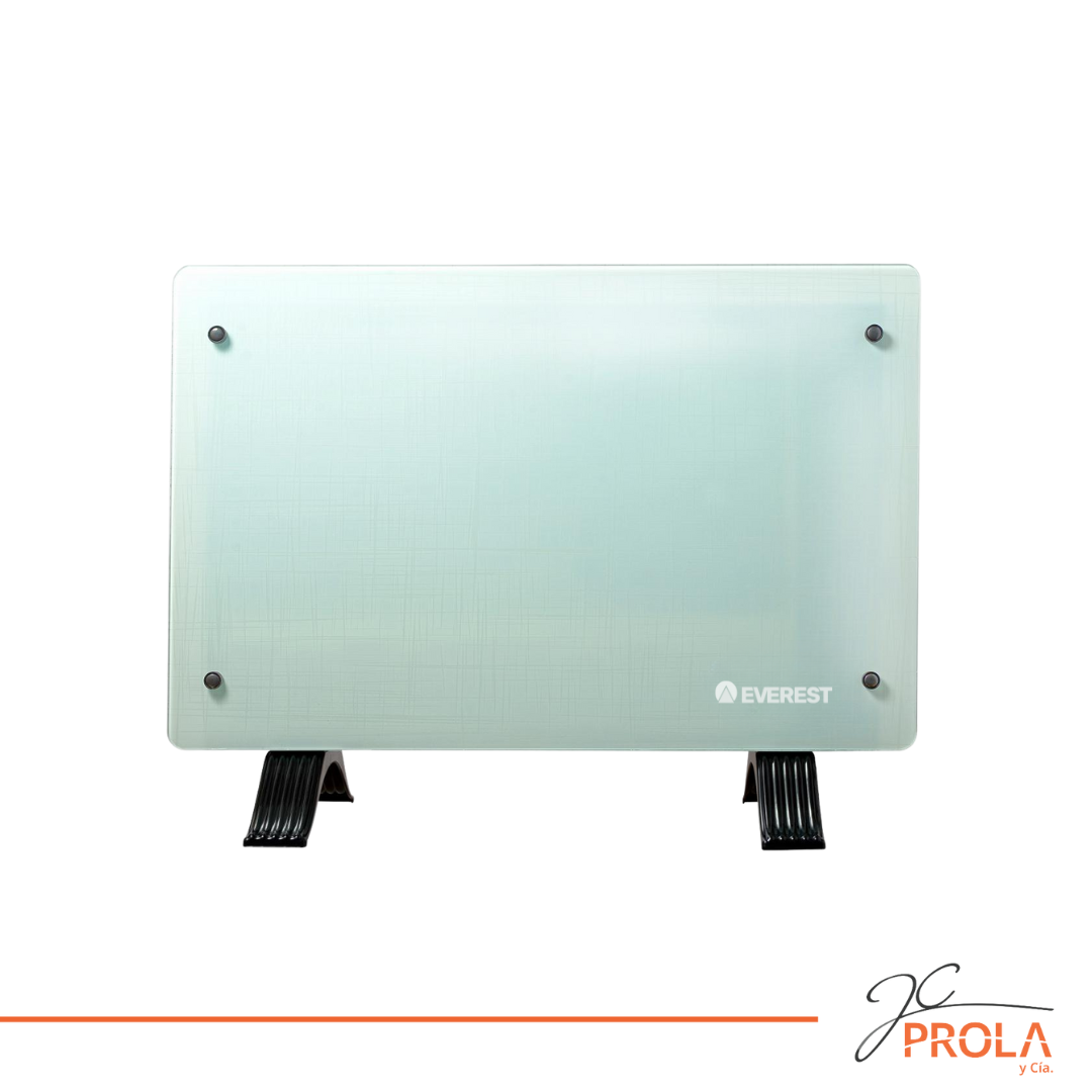 Vitrocalefactor con forzador. Panel de vidrio templado. Termostato regulable de 0 a 2000W. 3 niveles de potencia 750 / 1250 / 2000. Protector térmico por sobrecalentamiento. Corte automático por vuelco. Color blanco.